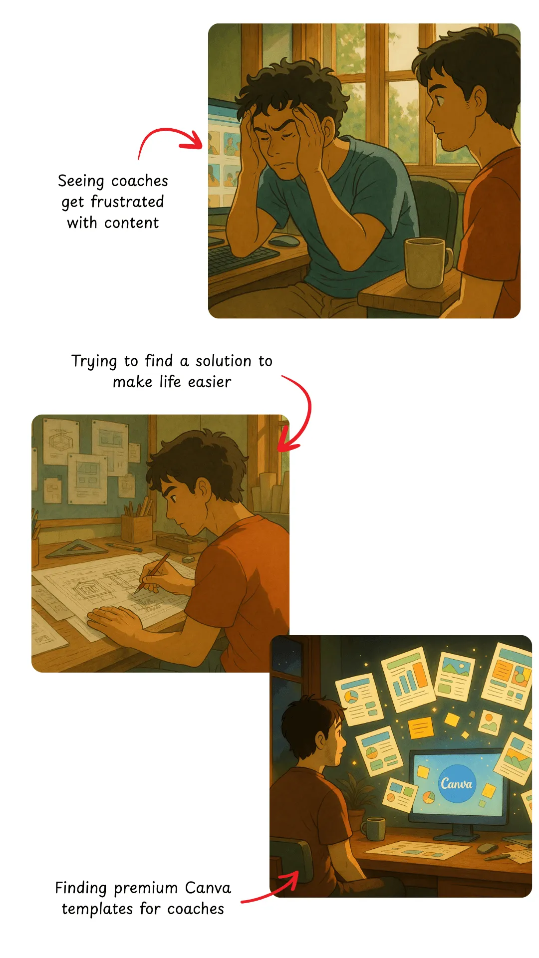 I saw coaches bouncing between Canva, apps, templates, and random posts — all to end up with graphics that didn’t match their brand or took forever to finish.