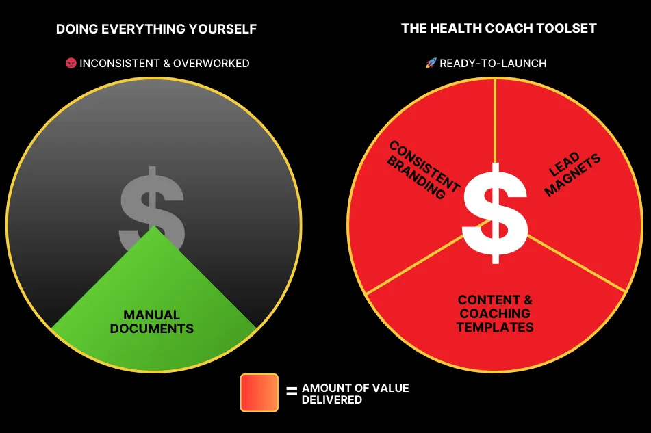 That collection evolved into The Health Coach Toolset — a complete system built to save coaches time, boost their brand, and reduce stress.