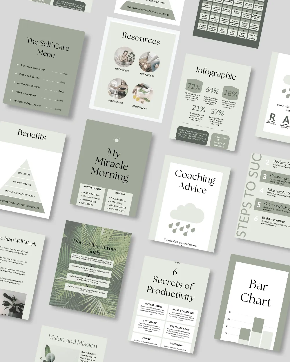 Whether you're coaching individuals, creating online courses, or selling digital products — these fully editable Canva templates help you create premium, consistent branding and content effortlessly without hiring designers